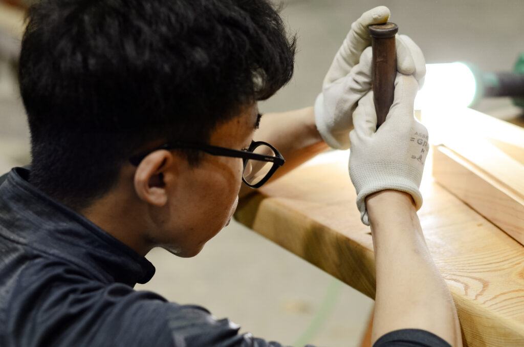 まず基本的な条件として、手先の器用さは欠かせないのと複雑な継手や仕口を正確に加工するためには、高度な技術力が必要です。空間認識力も重要な要素の1つで、設計図面を立体的にイメージし、完成形を頭の中で描ける能力が求められます。