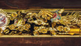 桟唐戸正面と背景に、透彫の彫刻がはめ込まれています。菊紋の彫刻に打たれた釘が錆びて膨らむことで、彫刻の細い部分が割れたり、欠落していました。専修寺は海が近いこともあって、潮風が建物に取り付けられた鉄金物にダメージを与えます。今回の修理では、カシの木釘を打ち込んで補強します。